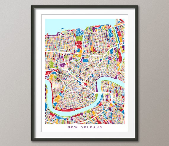 New Orleans Map New Orleans Louisiana City Street Map Art Etsy